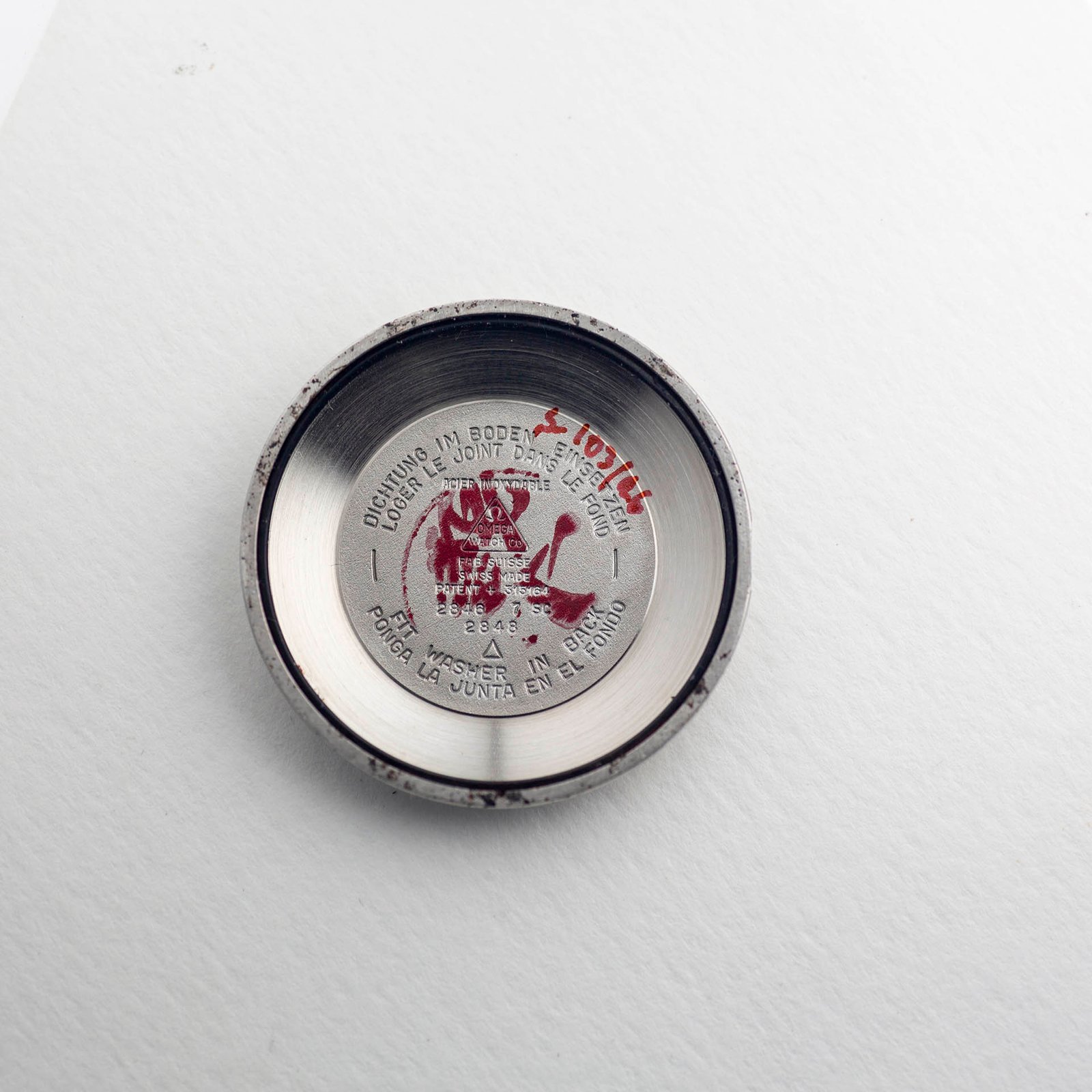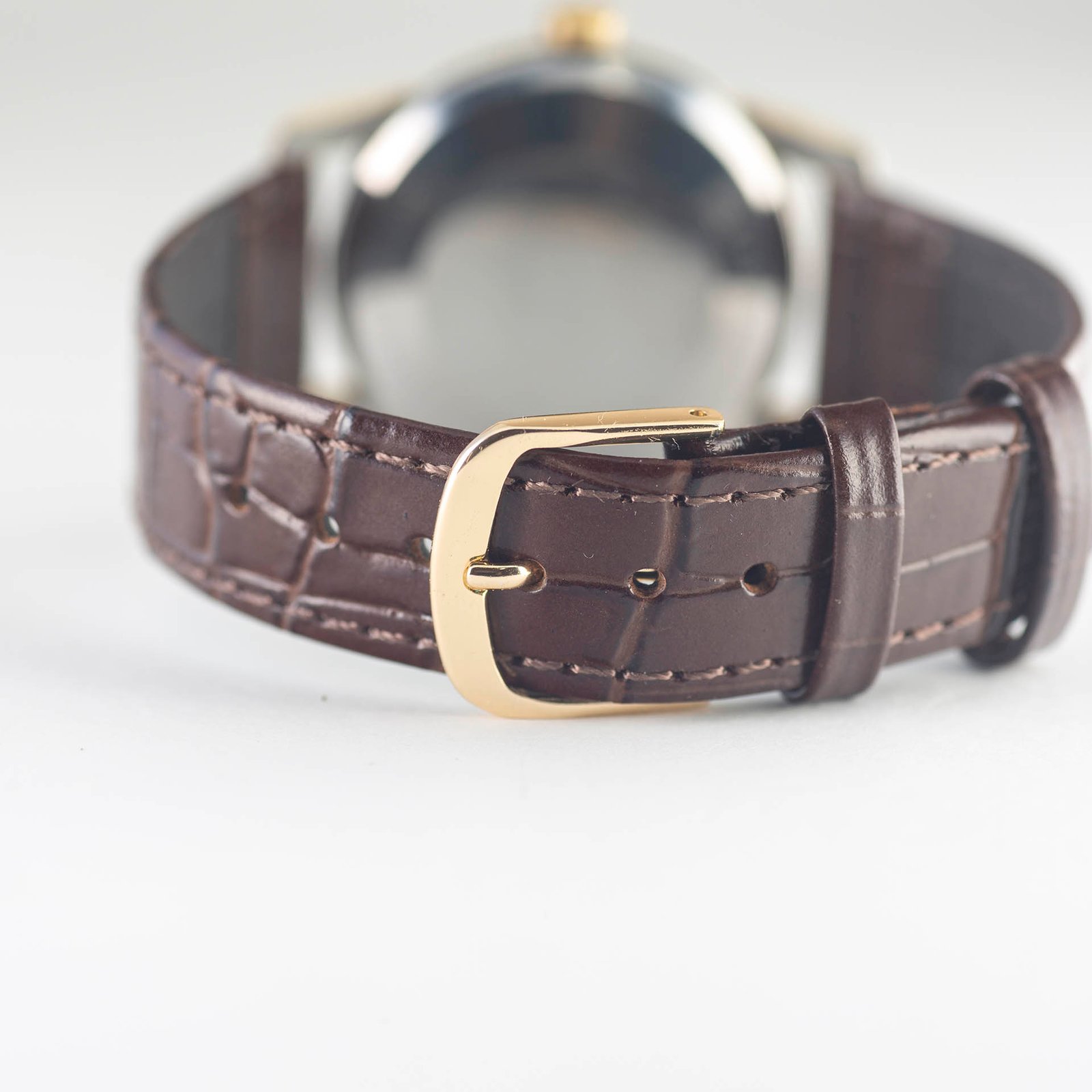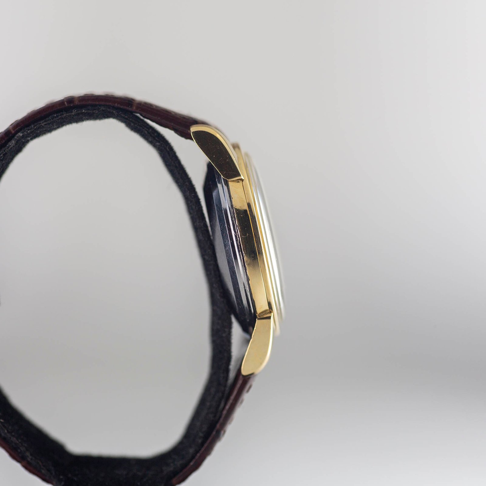 • Case: 14k gold cold-capped (200 microns). Stainless steel base and lid. Very good condition, with light marks from wear.