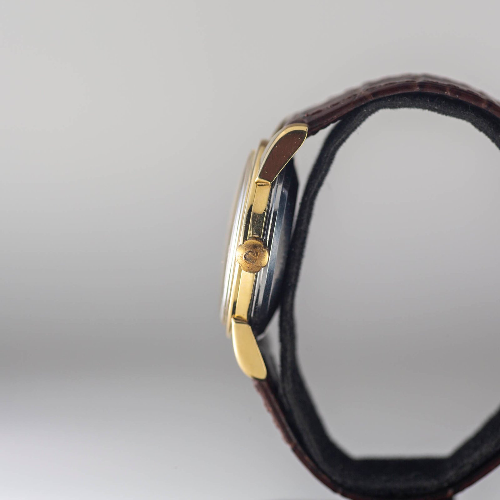 Omega launched the Seamaster 2846/2848 in the late 1950s. This model blends elegance and durability, thanks to its iconic design. The watch features a 200-micron 14k gold cold-capped case. This construction pairs luxury with the strength of stainless steel.