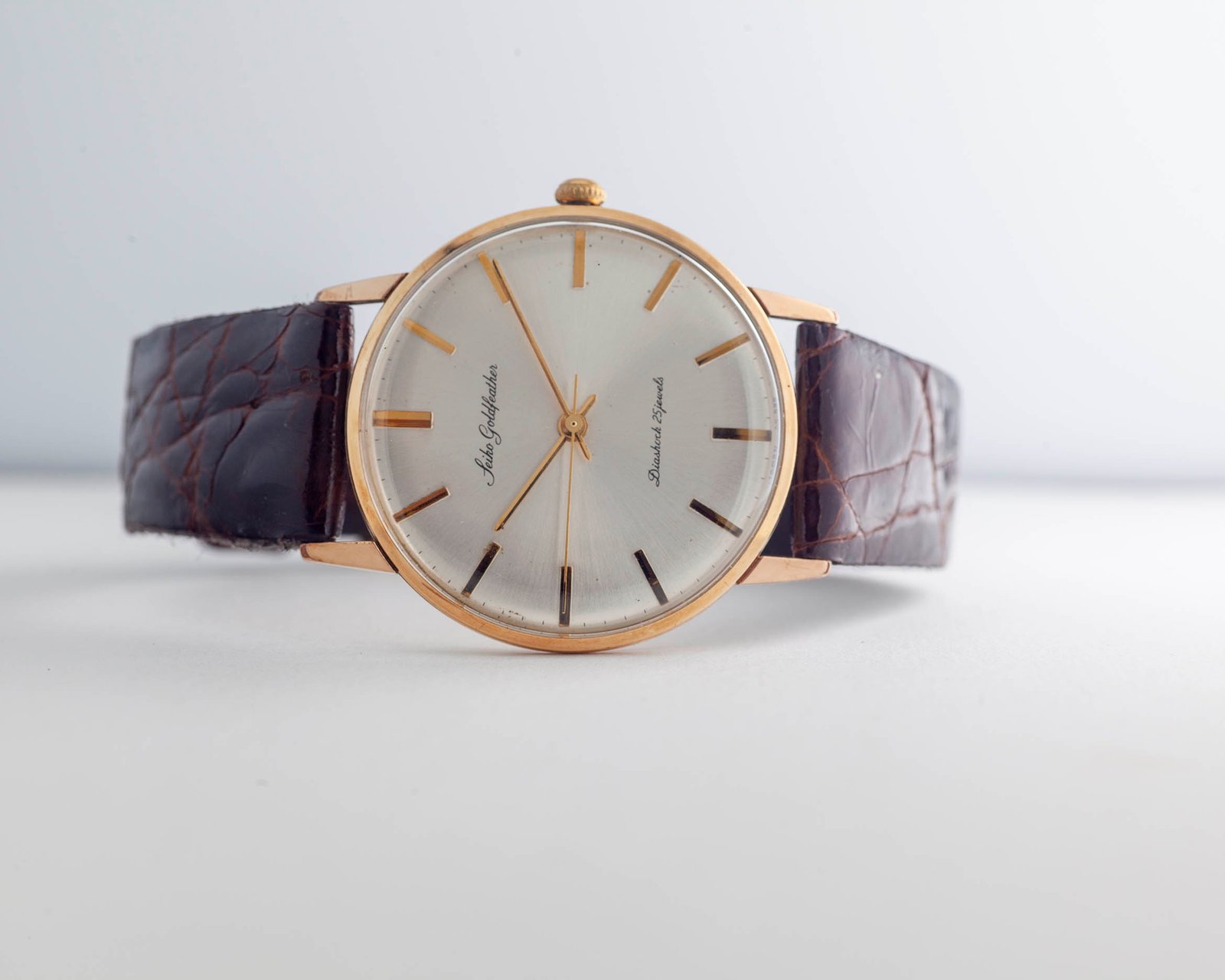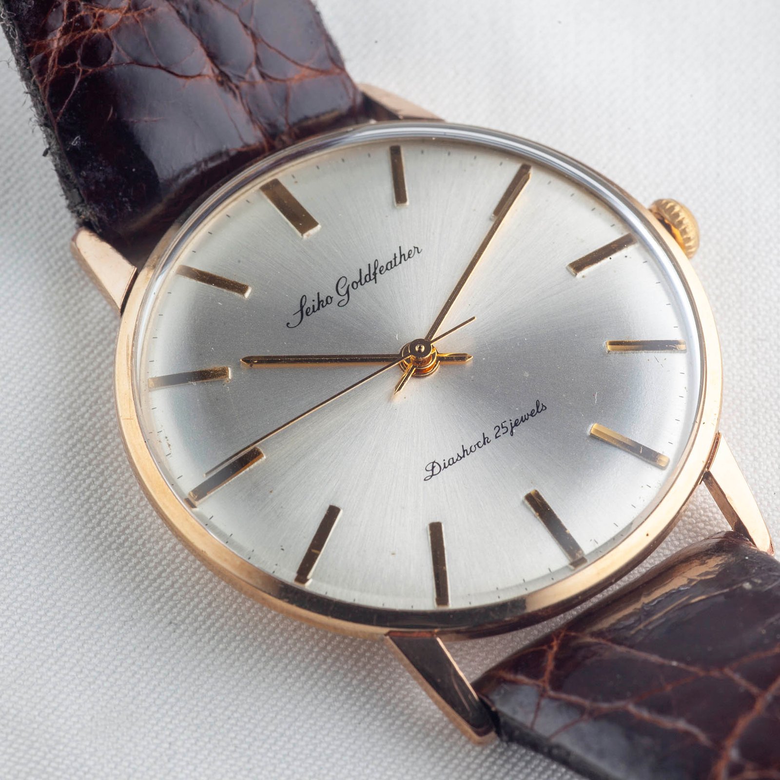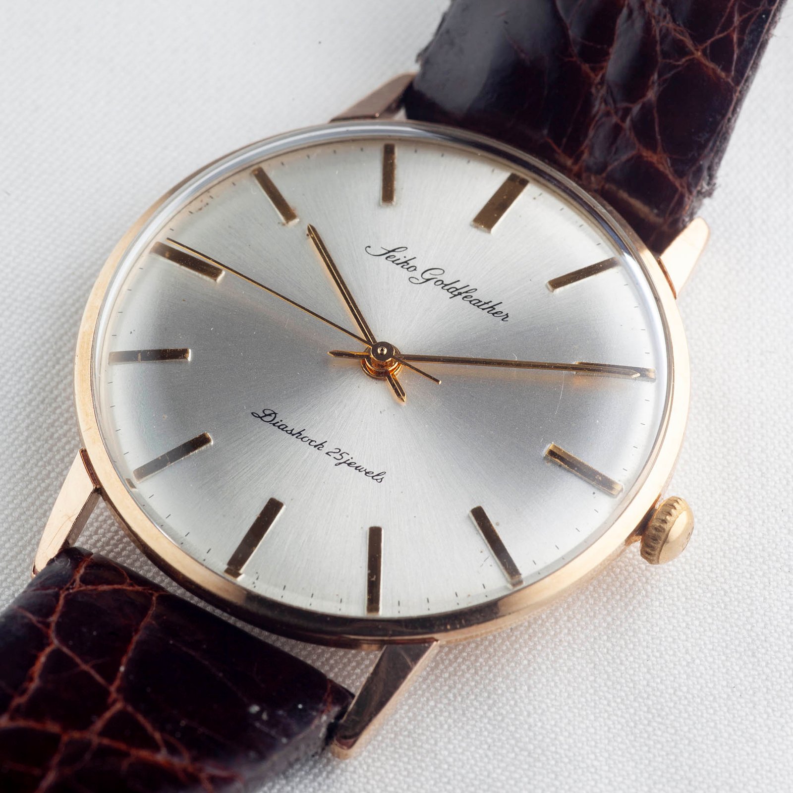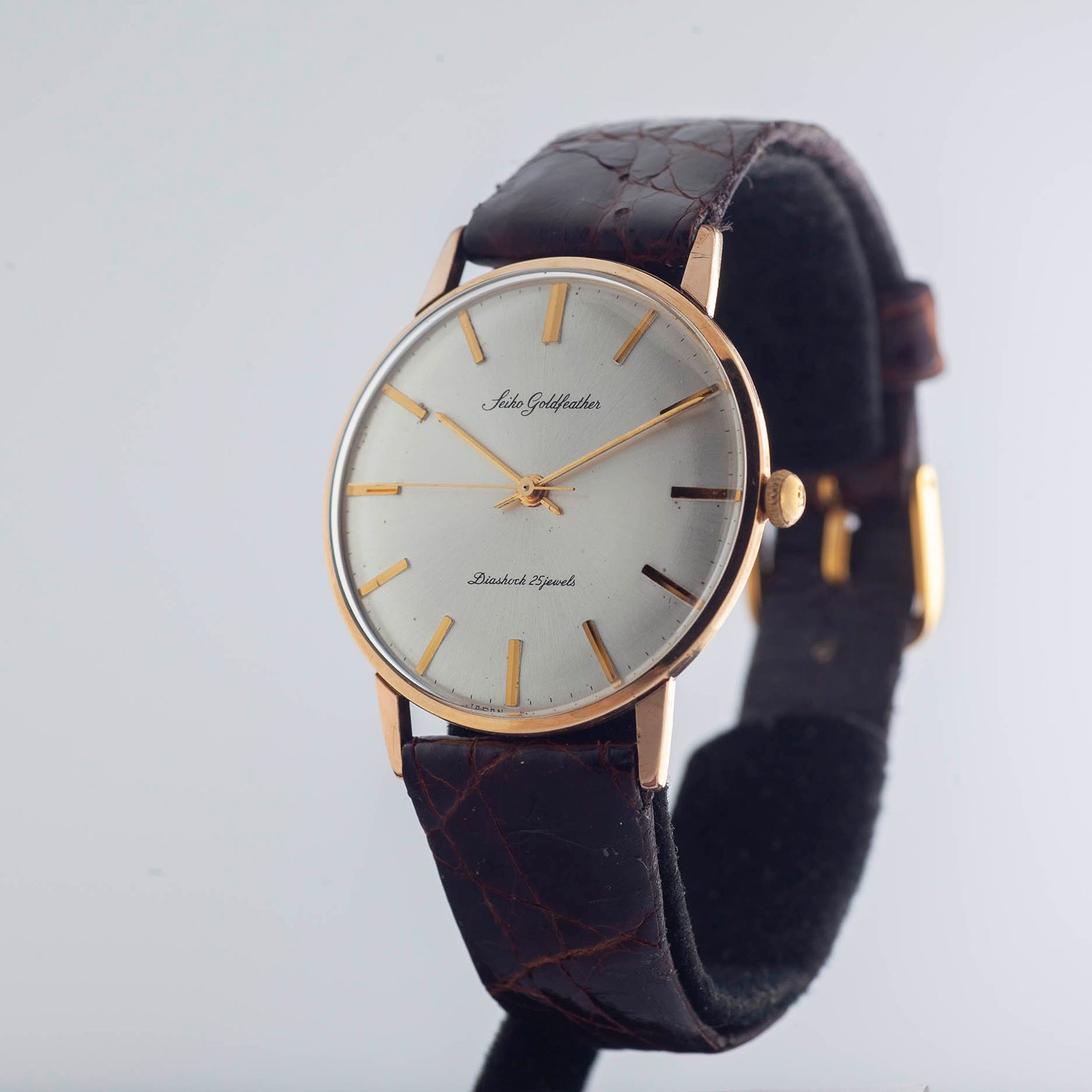 The Goldfeather was made at a time when movements were assembled and regulated largely by hand and still labelled under Seiko’s old name, “Seikosha.” The assembly of the caliber 60M was especially challenging for the brand given the thinness of the movement at 2.95mm. This movement is one of the thinnest ever made.