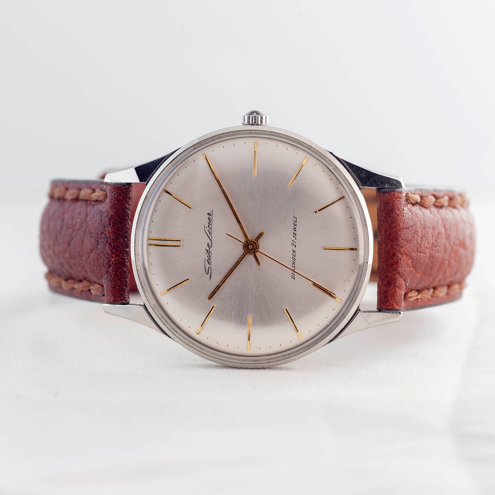 Step back into Seiko’s golden era with this 1961 Seiko Liner, a refined dress watch positioned just below the Grand Seiko line. Produced for only a few short years before being discontinued in 1964, the Liner remains one of Seiko’s rarest and most collectible models—cherished for its elegance and historical significance.